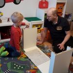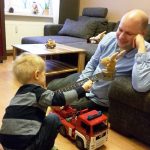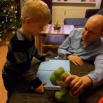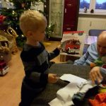Am zweiten Weihnachtsfeiertag ging es dann am frühen Vormittag schon zu Oma Ute und Opa Roland. Gerade einmal ausgezogen enterte Benni sofort das Wohnzimmer und erblickte die Geschenke unter dem Weihnachtsbaum. Er riss ein Geschenk nach dem anderen auf und freute sich riesig. Es gab diverse kleine „Klackautos“, passend zu seiner Autokollektion, die er im Vorjahr vom Weihnachtsmann bekommen hatte. Sofort musste das Kranauto seinen Container verladen, das Postauto das Paket ausliefern und das Müllauto den Müll einladen. Benni war nun völlig in seiner Welt versunken.