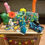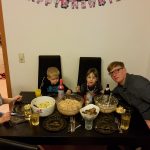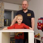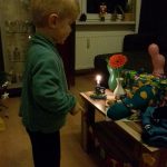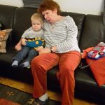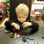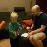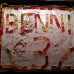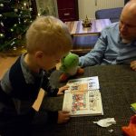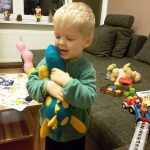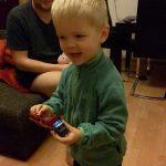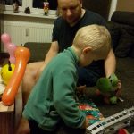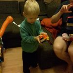 Zum Abendbrot war Benni dann nur sehr sehr schwer zu überreden, schließlich wollte er ja mit seinen Geschenken spielen. Für einen kurzen Moment ließ er sich dann doch überzeigen und mampfte sein Würstchen mit Heringssalat (den hatte der Opa Roland noch schnell vor dem Kaffee trinken rum gebracht 🙂 ).Danach wurde natürlich sofort weiter gespielt.