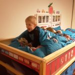 Wie nicht anders zu erwarten war das Ins-Bett-Bringen ein aussichtsloses Unterfangen und endete schließlich mit sehr sehr viel Geschrei und Gebrüll. Es war schon sehr spät als Benni dann endlich erschöpft einschlief – natürlich mit fast all seinen Geschenken mit im Kletterbett 😉
