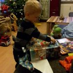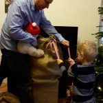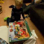 Kaum alles ins Wohnzimmer geschleppt, wurde der erste große Sack sofort geplündert. Ein Geschenk nach dem anderen kam zum Vorschein und wurde sofort ausgepackt. Es war bei Jedem ein einziges „aaahhh“, „ooohhh“ und „Mutti schau mal“. Benni kam aus dem Staunen nicht mehr heraus und seine Augen glänzten in einer Tour. Natürlich waren Patrick und Yoshi mit dabei und halfen ihm beim auspacken. Zum Schluss kamen eine große Feuerwehr, 3 Feuerwehrbücher, ein Vorlesebuch, eine Drachenhandpuppe, eine Box Playmais und ein Eisenbahn-Feuerwehrset zum Vorschein. Es waren exakt die Geschenke, die Benni Wochen zuvor auf seinen Wunschzettel gemalt und geklebt hatte.