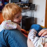 Gerade Matilda war total fasziniert von ihrem Cousin gewesen und wich kaum eine Sekunde von seiner Seite. Sie hüpfte in einer Tour auf dem Sofa um ihn herum und beobachtete genau, was er denn so machte. Es wurde von den Eltern natürlich das volle Programm geboten – von schlafen, brüllen, Flasche geben, bis hin zum wickeln und wieder schlafen 🙂