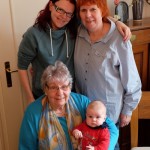 Der Karfreitag verlief sehr entspannt und ohne große Verpflichtungen. der Opa fuhr mit Bennimaus eine große Runde und so konnten Mama und Papa mal ein bisschen durchschnaufen. Am Nachmittag kamen dann Bennis Urgroßeltern zum Kaffee vorbei. Er verschlief den halben Besuch, aber war nach einer Stärkung super gut aufgelegt und grinste seine Uroma in einer Tour an 🙂 Der Abend war dann wieder entspannt, aber wieder mit der abendlichen Schreiattacke inklusive Einpucken. Aber daran hatte sich die Mutti mittlerweile schon gewöhnt. Und es war kaum zu glauben – Benni schlief das dritte Mal die Nacht durch *yippieh* Aber er wachte noch rechtzeitig auf, um am Samstag früh ausgiebig bei Omi und Opi im Bett zu kuschlen und herum zu albern 🙂