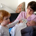 Am Mittwoch konnten Mama, Papa, Benni und seine Großeltern zusammen die neue Wohnung in Augenschein nehmen und noch einige Maße nehmen. Benni war da schon nicht so gut drauf – leider das übliche Bauchweh 🙁 Das wurde auch nicht wirklich besser den Tag über. Am Nachmittag kam dann noch Mamas Freundin Cori und ihr Cousin samt Freundin zum Kaffee und Quatschen vorbei. Abends kam der Benni leider dann so richtig „in Fahrt“. Er hatte Bauchweh übelster Sorte und schrie pausenlos wie am Spieß ohne was zu trinken. Die Oma und die Mama kämpften tapfer mit ihrem Spatz, bis der wiederholte Trick mit dem Fieberthermometer endlich Linderung verschaffte, Benni endlich kackte, seine Flasche nur so weg zischte und sofort ins Traumschlummerland entschwand. Eine mögliche Erklärung für die doch so plötzlich auftretenden Schmerzen kann die Gabe des falschen Milchpulvers gewesen sein – Benni bekam einfach aus der falschen Dose sein Pulver. Aber wer weiß ob es wirklich daran gelegen hat.
