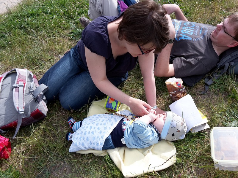 Heute Nachmittag waren Mama und Papa mit Benni zu einem kleinen Pfingstausflug zum nahegelegenen Spielplatz. Dort waren sie mit Tante Sandra, Onkel Konrad, Emilia und Matilda verabredet. Bei schönem Wetter kam der Benni gar nicht mehr aus dem Staunen heraus. Überall gab es etwas zu entdecken diverse Grashalme mussten erst einmal durchprobiert werden 😉 Dazu gab es für die Erwachsenen noch lecker Kuchen von Oma Beate. Irgendwann hatte auch der große Staunebenni genug und schlief selig in seinem Kinderwagen ein 🙂