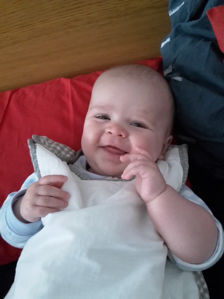 Nachdem der Benni schon vor langer Zeit das Abzeichen des „Durchschläfers“ erworben hatte, hat er sich heute das des „Dauerdurchschläfers“ erworben 🙂 – sehr zur Freude von Mama und Papa. Er scheint seinen Rhythmus gefunden zu haben. In den letzten Tagen hat er regelmäßig von 19 Uhr Abends bis halb 6 Uhr Morgens durch geschlafen. Mit gerade einmal 5 Monaten ist das mehr als beachtlich! Zumal er nach seiner Guten-Morgen-Flasche immer noch einmal total lieb 1-1/2 Stündchen weiter schläft 🙂