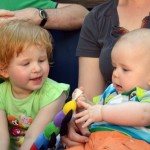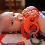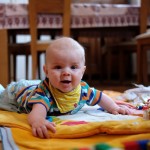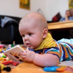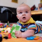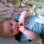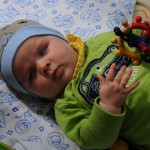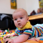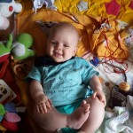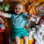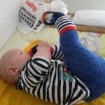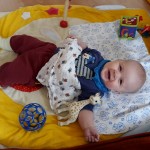 Spielen Benni ist nach wie vor ein kleiner Duracellhase 🙂 Mittlerweile liegt er mehr auf dem Bauch, als auf dem Rücken und kann sich auf dem Bauch schon erstaunlich lange halten. Sieh er etwas Interessantes, stemmt er sich mit aller Kraft mit seinen Ärmchen seinen kleinen Körper nach oben. Da scheint sich die wöchentliche Physiotherapie wirklich auszuzahlen 🙂 Benni freut sich nach wie vor tierisch, wenn man mit ihm allerlei Schabernack treibt und mit ihm herumtobt – vornehmlich mit seinem Papa 😉 In seiner Krabbelgruppe fühlt er sich pudelwohl und muss immer wieder als „Vorzeigeobjekt“ herhalten 😉 Benni ist da ja der Älteste und geht mit gutem Beispiel voran. Nach wie vor werden auch alle Fingerchen und Füßchen fleißig angesabbert 🙂