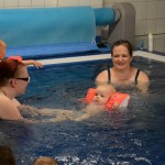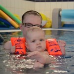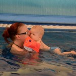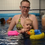 So, vorgestern hatte Benni seine vorerst letzte Schwimmstunde beim Babyschwimmen. Und sowohl die Kursleiterin, als auch Muttis kleine Wasserratte zeigten noch einmal ihr ganzes Repertoire. Die Leiterin verdunkelte den Raum und knipste das bunte Licht im Wasser an. Benni war total fasziniert und haute wie wild immer in das Wasser, wenn sich die Farbe änderte. Zusammen mit den anderen Wasserratten konnte und durfte Benni sein ganzes Können zur Schau stellen. In den Disziplinen „Relaxtes Herumtreiben mit Schwimmflügelchen“, „Schwimmen im Strömungskanal“, „Tauchen“, „rhythmisches Dauerpaddeln“ und „Spielzeug fangen und ansabbern“ wurden Bestnoten erzielt 🙂
