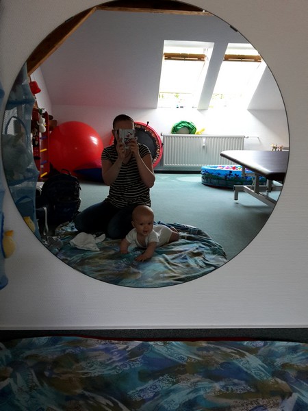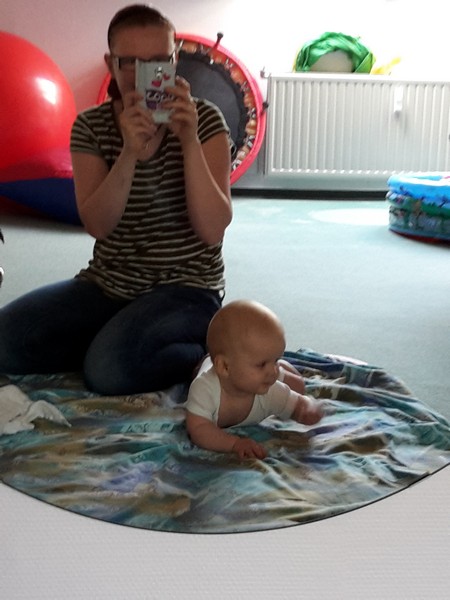 Heute war die Mutti mit Benni zum vorerst letzten Mal bei der Physiotherapie. Und er zeigte sich, wie schon alle Sitzungen zuvor, von seiner Schokoladenseite. Er war kaum zu bremsen und so turnte, hampelte, brabbelte und lachte er in einer Tour 🙂 So gab es folgerichtig nur Lobeshymnen von der Therapeutin. Im Abschlussbericht ist folgendes zu lesen: „dreht sich von Rückenlage in Bauchlage über beide Seiten, von Bauchlage in Rückenlage mit Hilfe, kreiselt in Bauchlage über beide Seiten, altersgerechter Flieger, versucht sich vorwärts zu schieben, kommuniziert, experimentiert und hält Blickkontakt“