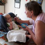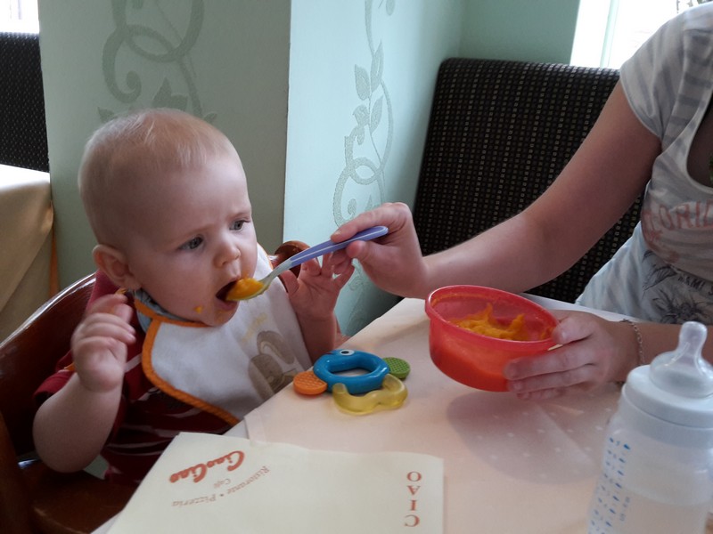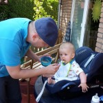 Essen In dieser Kategorie spielt der Benni, zumindest im Moment, nicht mehr ganz oben mit. Mittlerweile bekommt er nur noch ganz früh und am Vormittag seine Milchflasche. Ansonsten besteht sein Essen aus Brei in sämtlichen Variationen. Er isst schon noch gut, aber immer öfter benniuntypisch nicht ganz auf 😉 Erst gestern hat er ein mega Theater beim Füttern gemacht…keine Ahnung was los war. Aber sonst isst er weiterhin ganz brav Muttis selbst gekochten Super-Powerbrei 🙂 Doch immer öfter möchte er das essen, was die Erwachsenen essen. So schmaufelt er schon einmal ein halbes Brötchen oder einen Zwieback bis zur Unkenntlichkeit 😉
