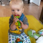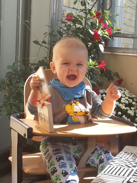 In den letzten Wochen konnte er viel Zeit mit Papa verbringen, war viel shoppen, Frühstücken, hat viel mit seinem Kumpel Leo gespielt, hat die Einschulungsfeier von seiner großen Cousine prima absolviert, mit den anderen Mamis, Papis und Krabbelfreunden aus dem Haus gegrillt, irre viel getobt und gelacht, hat gelernt Schnittchen zu essen, zu sitzen und sich im Sportwagen spazieren zu fahren, war auf großer Fahrt bei Omi und Opi und hat wilde und zahme Tiere kennen gelernt. Puh da war so Einiges los gewesen 🙂