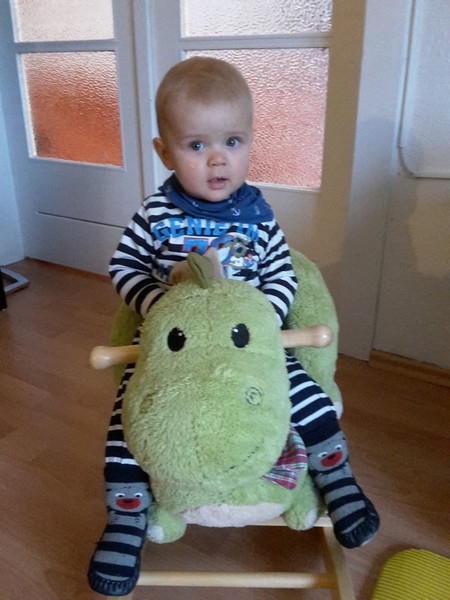 Der Benni „mutiert“ so langsam aber sicher zu einem richtigen Wachhund. Sobald es an der Tür klingelt oder Jemand zur Wohnungstür herein kommt, robbt er wie wild und in einem Affenzahn zur Tür, um zu schauen wer da kommt. Nur das Bellen eines Wachhundes ersetzt Benni durch lautes Quieken und Freudenschreie 🙂