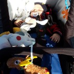 Nach einer wieder durchwachsenden Nacht war Benni am Morgen wie immer bester Laune und machte die gesamte Wohnung noch vor dem Frühstück unsicher. Mama und Papa hatten am Abend zuvor beschlossen, nicht wie geplant am Samstag Vormittag, sondern schon am Freitag Abend die Heimreise anzutreten. Das hielten sie gerade für Benni für besser und stressfreier. So wurde am Vormittag schon langsam begonnen die Sachen zusammen zu packen. Trotzdem ging es natürlich zu einem großen Spaziergang wieder ans Wasser. Dieses Mal war es bedeckt und sehr windig (das erste und einzige Mal im gesamten Urlaub!!!) Benni störte das alles überhaupt nicht und schlummerte ganz lieb in seinem Wagen. So verpasste er auch wieder das „Auslaufen“ der ganzen Boote der Segelregatta, die auch an diesem Tag weiter ging. Zu Hause angekommen wurde noch ausgiebig gespielt und schon ging es wieder ab zu Mittagsschläfchen. Die Mutti hatte sich gleich mit dazu gelegt, um für die bevorstehende Nachtfahrt ausgeruht zu sein. Benni tat ihr den Gefallen einer ausgiebigen Mittagsruhe und schlief bis weit in den Nachmittag hinein. Bei mittlerweile wieder herrlichstem Wetter wurde sich schnell gestärkt und es ging noch einmal zu einem ausgiebigen Abschiedsspaziergang an die Promenade. Benni war quietsch vergnügt und kam aus dem Staunen wieder nicht heraus. Das absolute Highlight war dann noch die Möwenfütterung auf der Seebrücke – Benni staune nicht schlecht über das viele Gekreische und den Futterneid der Möwen 😉 (jaja Benni nicht nur du kannst so laut quietschen und Futterneid haben 😉 ) Mama und Papa gönnten sich dann noch ein XXL-Softeis und holten Räucherfisch für zu Hause und Fischbrötchen für die Fahrt. Mama erfuhr dann auch, was das eigentlich für eine Regatta war – es waren die internationalen deutschen Jugendmeisterschaften im Cadet. Das alles war so aufregend, dass Benni wider erwarten noch einmal müde wurde und sich noch eine kleine Mütze Schlaf auf dem Heimweg holte. Angekommen, wurden noch die letzten Sachen gepackt und alles im Auto verstaut. Benni mampfte noch ganz lieb seinen Abendbrei und bekam schon seinen Schlafanzug an. Schön warm eingekuschelt ging es dann Abends wieder gen Heimat. Er schlief fast die gesamte Fahrt total lieb. Zu Hause angekommen, gab es dann noch eine kleine Milchflasche für die restliche Nacht und entschwand sofort ins Traumschlummerland 🙂