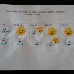 Die Mama war letzte Woche krank geschrieben und daher zu Hause. Das hat sie neben der Regeneration für einige Bastelarbeiten für Bennis Portfolioordner genutzt. Die Mama sollte ein bisschen was über Benni und seine Familie schreiben und sie einmal vorstellen. Dem ist die Mutti natürlich gerne nach gekommen 🙂 Herausgekommen sind einige Blätter voller schöner Fotos. Außerdem sollte sie zusammen mit Benni letzte Woche einmal das Wetter beobachten und die entsprechenden Symbole dazu aufkleben. Er hatte nicht wirklich Lust und daher hat das dann die Mutti für ihn erledigt 😉