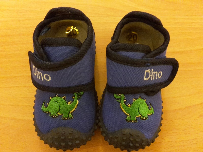 Gestern haben Mama und Papa ihrem Spatz seine ersten Paar Schuhe gekauft – es gab 2 Paar Hausschuhe. Die Krippe hatte das angeregt, da Benni immer wieder seine Hüttenschuhe beim Robben verloren hat. Da sie auch mit ihm fleißig Stehen und Krabbeln üben, sind Bennis Eltern dem Wunsch gerne nach gekommen. Bennis Füße wurden im Schuhladen erstmals vermessen. Er hat aktuell eine 20 – seine Füße hätte sich die Mutti echt größer vorgestellt. Schnell waren die passenden Schühchen gefunden – natürlich im Dinostyle 🙂 Seinen neuen Treter hat Benni dann gleich zu Hause und heute in der Krippe eingeweiht und ist damit bestens zurecht gekommen.