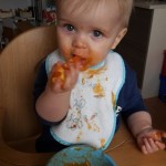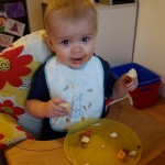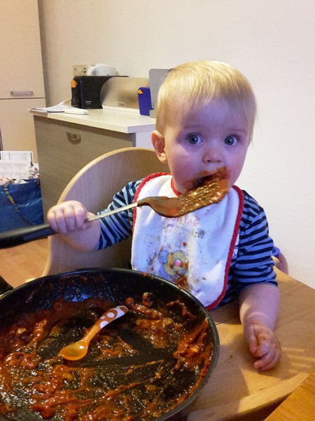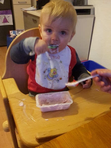 Essen In dieser Kategorie kann es eigentlich wie immer nur Positives zu berichten geben. Benni ist und bleibt eine riesen große Fressraupe. Er ist mittlerweile eine richtige Naschkatze geworden. Er probiert auch einfach alles aus, was es zu Essen gibt. Es gibt eigentlich kaum etwas, was Benni nicht mag. Im Moment gibt es Nichts, was er besonders gerne mag. Es wird alles gegessen was auf den Tisch kommt- bevorzugt das, was Mama und Papa essen 😉 Einen riesen Sprung hat Benni im Selber-Essen gemacht. Wie selbstverständlich isst er mit dem Löffel – und das völlig alleine. Mama und Papa müssen so gut wie gar nicht mehr helfen. Selbst die kleinen Häppchen zum Abendbrot oder das Brötchen zum Frühstück werden versucht mit dem Löffel zu essen 😉 Dabei zeigt sich, dass er es mit beiden Händen kann. Gar nicht schön ist hingegen das alltägliche Bocken beim Essen. Da fliegen schon einmal Teller und Schale durch die Küche, wenn ihm etwas nicht passt oder nicht schnell genug geht. Einmal geworfen, ist seit kurzem das Essen unverzüglich zu Ende und der Tisch wird unter heftigstem Protest abgeräumt. Mal schauen, ob der Benni das so langsam einmal versteht, dass das so nicht geht.