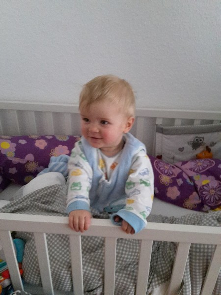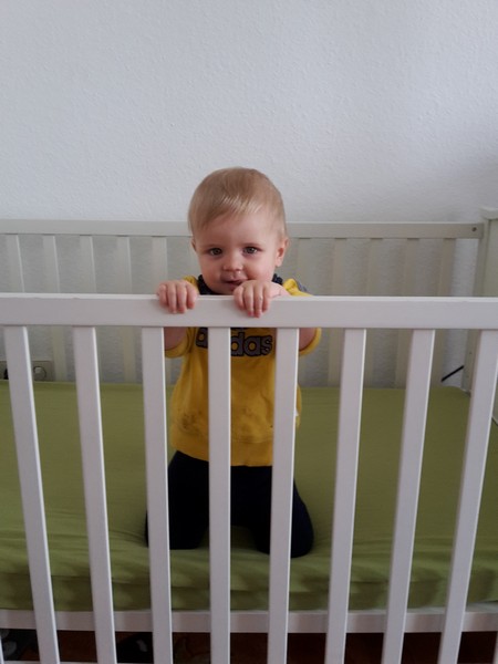 Also damit hätte die Mama heute früh nicht gerechnet. Nach einer Nacht mit mehr als ausreichend Schlaf für Mama und Papa, kniete der Schnuffelhase Freude strahlend in seinem Gitterbettchen und rief ganz laut „Mama“. Als sie dann in sein Zimmer kam, juchzte er wie wild und streckte ihr seine Ärmchen entgegen. Gibt es etwas Schöneres, als so von seinem Kind geweckt zu werden???? Für die Mama definitiv nicht 🙂 🙂 🙂