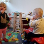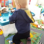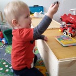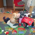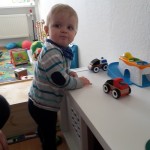 Spielen Benni ist ein wahres Spielemonster geworden. Er spielt mit einer schier unfassbaren Begeisterung und vor allem Ausdauer. Es gibt eigentlich kein Spielzeug mit dem er nicht spielt. Besonders angesagt sind aber im Moment sein Bobbycar, seine kleinen Spielzeugautos, die gelben Knautschbälle und seine kleinen Bücher. Er ist schon richtig geschickt, wenn es um das Schmeißen von Bällen oder dem Bedienen seinen Brummkreisels geht. Benni hat auch seit kurzem die Finger-und Singspiele für sich entdeckt. Er strahlt immer über beide Bäckchen, wenn man anfängt zu singen. Beim Spielen mit anderen Kindern ist er hingegen eher so der Beobachter. So kann es schon einmal sein, dass ihm andere Kinder sein Spielzeug einfach weg nehmen. Es sei denn es handelt sich um sein Lieblingsauto in der Krippe – wie das endete ist ja bekannt 😉 Auch lässt er sich weiterhin sehr sehr gut ablenken und beruhigen, wenn er weinerlich oder müde ist.