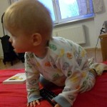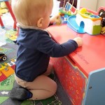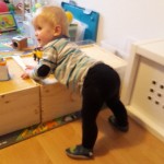 Bewegung In dieser Kategorie hat der Benni die größten Fortschritte gemacht. Es ist gerade einmal 3 1/2 Woche her, dass ihn Mama und Papa animiert haben sich hin zu setzen und sich hoch zu ziehen. Mal abgesehen von den ersten sehr anstrengenden Tagen hat das Benni so irre schnell verstanden und toll umgesetzt. Er blüht regelrecht auf. Er quietscht und juchzt dann wie verrückt, als ob er sagen will, dass er das alles jetzt endlich kann 🙂 Das Robben ist mittlerweile total out und in den Hintergrund gerückt. Benni zieht sich wie selbstverständlich an allem hoch, kommt in den 4-Füßler-Stand und setzt sich hin. Und das fast pausenlos. Der kleine Fauli probiert es aber immer noch auf die knatschige Tour wenn er etwas nicht möchte oder er zum Spielzeug getragen werden möchte. Aber nicht mit Mama und Papa. Nach kurzer Zeit krabbelt er dann doch los 😉 Mit dem Stehen wird es auch immer besser. Zwar schafft es Benni noch nicht, sich alleine hin zu stellen, aber wenn man ihn hin stellt, dann „klappt“ er zumindest nicht mehr gleich zusammen 😉 Die Mama denkt, dass es in dieser Kategorie bald um das Laufen gehen wird 🙂