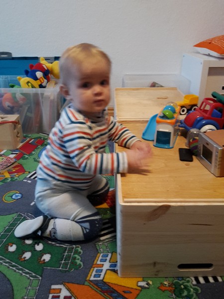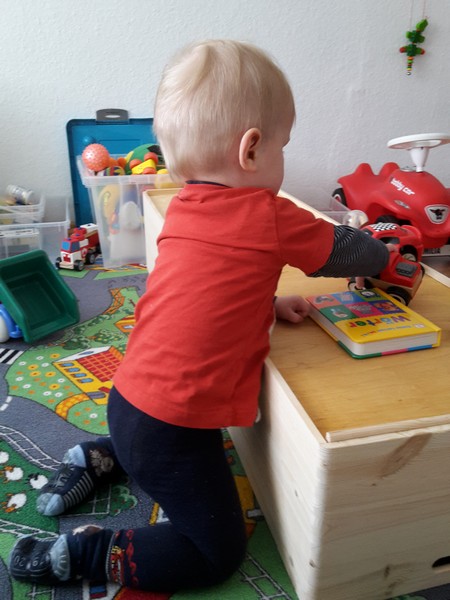 Also der Benni macht in den letzten Tagen bzw. hat in der vergangenen Woche wieder einen riesigen Sprung in Sachen Bewegung gemacht. Das Mama-und-Papa-Bootcamp scheint sich langsam aber sicher doch bezahlt zu machen 😉 Er hat jetzt total den Dreh raus aus der Bauchlage in den 4-Füßler-Stand zu kommen und sich hinzusetzen. Er macht das immer schneller und öfter und schon richtig geschickt. Auch schafft er es jetzt schon direkt aus der Bauchlage in den Sitz zu kommen. Seine Holzkisten sind überhaupt kein Problem mehr und werden im nu erklommen 🙂 Benni muss aber nach wie vor stark motiviert werden – so ein Fauli aber auch 😉