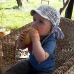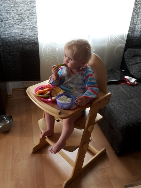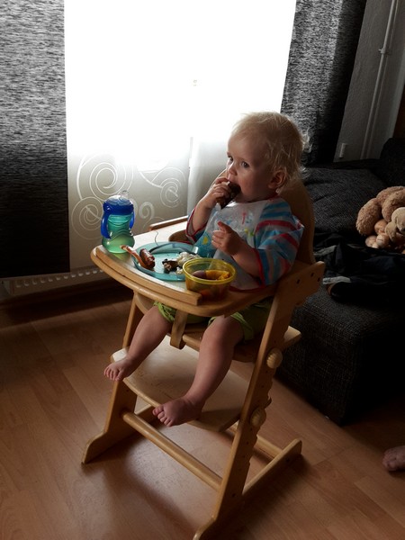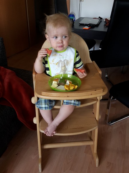 Essen In dieser Kategorie gibt es nicht wirklich viel Neues zu berichten. Benni kann eigentlich 24 Stunden am Tag essen. Zur Freude von Mama und Papa im Moment total gerne Obst – vor allem Melone, Himbeeren und Ananas. Kommt für ihn etwas Neues auf den Teller, wird ohne zu Zögern probiert und meistens für lecker empfunden 😉 Dabei scheint sich Benni die Geschmacksverirrungen seiner Eltern zum Vorbild genommen zu haben. Da wird schon einmal ein Nutellahörnchen und ein Würstchen mit Senf oder eine Gewürzgurke mit Griesbrei zusammen verdrückt 😉 Ansonsten ist Benni ein Schlaufuchs und weiß schon ganz genau, wo überall die Mama seine kleinen Leckereien aufbewahrt. Zielsicher werden diese Punkte bei Magenknurren angefahren 😉