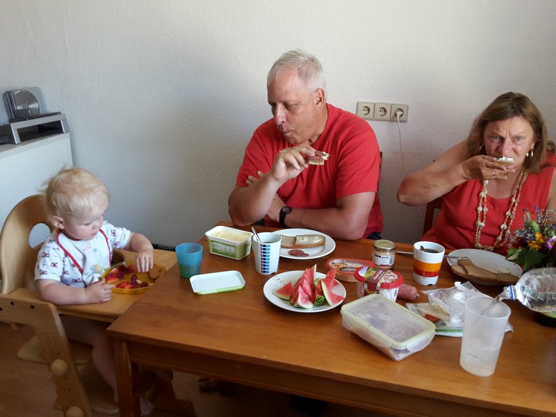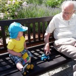 Letzten Sonntag haben Omi Beate und Opi Rainer dem Benni und seinen Eltern einen Kurzbesuch abgestattet. Sie waren auf dem Rückweg aus Thüringen nach Hause und machten daher beim Benni einen kleinen Zwischenstopp. Benni freute sich riesig und schäkerte in einer Tour mit ihnen. Nach einer kurzen Stärkung ging es noch auf den Hof zum Spielen. Schnell noch eine Sandburg gebaut und mit seinem Auto herum gedüst, ging es dann für Omi und Opi dann auch schon wieder weiter gen Heimat. Benni, Mama und Papa haben sich total über den Besuch gefreut, auch wenn er viel zu kurz gewesen ist.