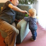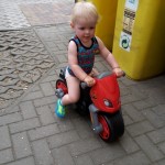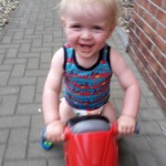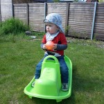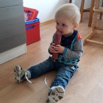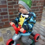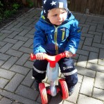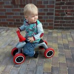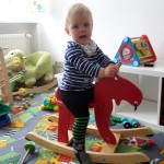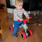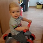 Bewegung Diese Kategorie kann man so beschreiben – es wird so langsam. Benni ist einfach so unfassbar agil und ständig in Bewegung. Er zieht sich jetzt wie selbstverständlich an allem hoch und will überall hoch und drauf klettern. Er kommt auch jetzt endlich alleine wieder aus dem Stand auf die Knie, was wieder so einiges erleichtert. Benni steht immer sicherer, aber noch nicht völlig alleine. An 2 Händen laufen klappt prima, an 1 Hand wird momentan fleißig geübt. Aber er ist nach wie vor ein großer Fauli – getreu dem Motto „nur soviel wie nötig“. Wozu laufen, wenn man auch anders an sein Ziel kommt 😉 Von seinem Lauflernrad bekommen ihn Mama und Papa auch kaum noch runter. Er düst wie ein Irrer sowohl drinnen als auch draußen damit herum. Neu ist, dass er jetzt alleine wieder von ihm herunter kommt – sehr unkonventionell und lustig, aber es funktioniert 🙂