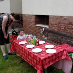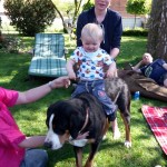 Letzten Freitag hat die Hausgemeinschaft von Mama und Papa nach langer Zeit einmal wieder ein Hausgrillen veranstaltet. Die äußeren Bedingungen waren sehr grenzwertig ob der sehr schwülheißen Temperaturen. Am späten Nachmittag trauten sich alle Beteiligten dann hinter den Hof, wo natürlich ausgiebig geplantscht wurde. Für den Hunger gab es dann allerlei Leckerein in Form von Würstchen, Hühnchen, Toast und Melone. Benni langte natürlich ordentlich zu und mampfte ein Miniwürstchen nach dem anderen. Am frühen Abend jedoch zog es sich am Himmel bedrohlich zu und es stürmte regelrecht. So waren dann alle Familien langsam gezwungen die Sachen in Sicherheit zu bringen. Kaum wieder in der Wohnung angekommen, war der Spuk wieder vorbei. Benni jedoch rechte die ganze Aufregung und fiel total erschöpft ins Bettchen. Auf das nächste Hausgrillen 🙂