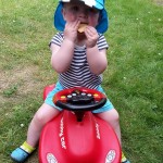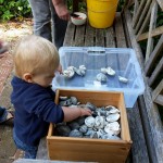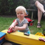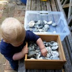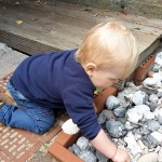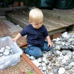 Letzten Sonntag war der Benni wieder einmal zu Besuche bei Omi Ute und Opi Roland. Da das Wetter so schön war, ging es nach dem Mittagsschlaf in den Garten. Dort mampfte Benni fast alle Erdbeeren und Himbeeren von der Omi 😉 Der absolute Renner war jedoch das neben dem Bungalow gelegene Moentrainingslager in Form von diversen Steinen und Muscheln aus Dänemark. Benni krabbelte gleich drauf los und buddelte wie wild in dem Steinhaufen. Er suchte gezielt die Donnerkeile und sortierte sie in sein Körbchen 🙂