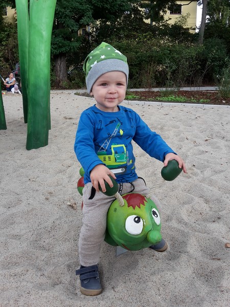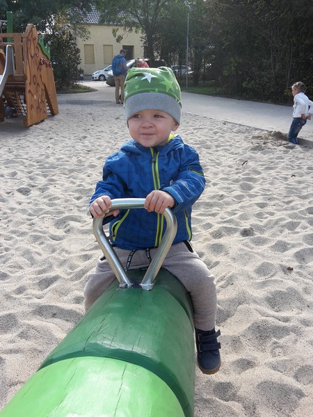 Krippe In der Krippe gibt es ja mal überhaupt keine Probleme. Benni ist ein absolutes Krippenkind und geht gerne zu den Kindern in seine Gruppe. Im Moment ist das morgendliche Abgeben sehr entspannt. Benni geht ohne Theater und Gejammer in die Frühgruppe – nur seinen WauWau oder Hase braucht er noch etwas um anzukommen. Ihm gefällt es in der Krippe so gut, dass das Abholen am Nachmittag in heftigem Geschrei endet, da er noch gerne da bleiben möchte 😉 Von seinen Erziehern hören Mama und Papa keinerlei Beschwerden. Nur, dass er einen ganz schönen Dickkopf hat, aber den hat er auch zu Hause 🙂 Es scheint sich enorm auszuwirken, dass Benni nun endlich laufen kann und er so mit den Anderen in der Gruppe mithalten kann. Es tut so gut zu sehen, wie er mit den anderen Kindern draußen herumtobt und nicht mehr nur auf dem Boden „herumliegt“ 🙂