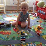 Spielen Hier gibt es nichts aber auch gar nichts zu beanstanden. Benni spielt so unfassbar toll, ausgiebig und ausdauernd, das ist schon mehr als beachtlich. Natürlich stehen seine Autos unangefochten auf Platz 1 seiner Lieblingsspielzeuge. Das gefühlte gesamte Kinderzimmer ist voll damit. Mama und Papa wissen gar nicht, warum sie überhaupt anderes Spielzeug als Autos besorgt haben 😉 Er nutzt jetzt auch immer mehr seinen Spieleteppich und die ganzen Straßen darauf. Benni kann sich für sein Alter extrem gut alleine beschäftigen. Das hilft super, wenn Mama und Papa z.B. die Wohnung aufräumen und putzen. Sonst muss man lediglich im Kinderzimmer anwesend sein, wenn er spielt. Möchte er mit ihnen etwas machen, kommt er zielgerichtet zu ihnen und es heißt „bitte malen“ oder „Mama/Papa Buch“. Gerade die Bücher nimmt sich Benni meist am Abend von ganz alleine und hopst auf dessen Schoß. Einmal angefangen, wird dann Buch für Buch Autobuch für Autobuch durchgeblättert und bestaunt 🙂