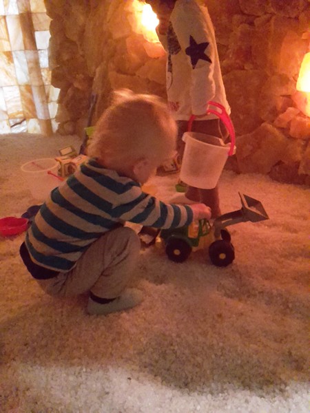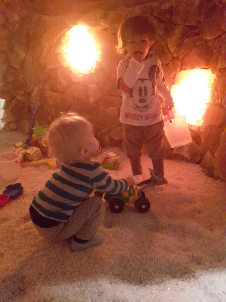Letzte Woche war die Mama mit ihrem Spatz zum ersten Mal in der Salzgrotte gewesen. Beide hatten etwas Schnupfen und Husten und so verabredeten sie sich kurzer Hand mit Johann und Til zum gemeinsamen Spielen in der Grotte. Benni war anfangs sehr skeptisch ob der Nebels und der Grotte, aber als er in der Kinderecke einen Bagger gesichtet hatte, war das Eis gebrochen. Er spielte ganz lieb und ausdauernd auf dem salzigen Boden, sodass sich die Mama mit den anderen Muttis ausgiebig und mal in Ruhe unterhalten konnte. Die vernebelte Luft war so angenehm, dass Bennis Husten spürbar nachließ und der Schnupfen von der Mama am nächsten Tag so gut wie weg war.