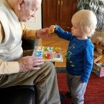 Letztes Wochenende war es endlich soweit. Der Benni hat zum ersten Mal eine Nacht alleine bei Oma Ute und Opa Roland verbracht. Und was kann man berichten: es hat alles, einfach alles super toll geklappt und der Benni war sowas von lieb und pflegeleicht gewesen. Mama und Papa hatten ihren Spatz am Samstag Nachmittag zum Kaffee hin gebracht. Leider unter etwas schlechten Voraussetzungen, da Benni nach dem Mittagsschlaf erhöhte Temperatur und eine dicke rote Backe hatte. Aber mit etwas Schmerzsaft und kuscheln waren die doofen Zähnchen schnell vergessen. Benni tobte und spielte wie gewohnt ganz ganz toll, ehe sich Mama und Papa am frühen Abend aus dem Staub machten. Und wer dachte, dass Benni beim Abschied Theater machte, hatte sich getäuscht. Er kommentierte trocken deren Abwesenheit mit „Mama Arbeit“ – schlaues Kerlchen der Benni 😉 Aus Überlieferungen von Oma und Opa aß er ihnen dann beim Abendbrot die Haare vom Kopf, ehe es natürlich zum plantschen in die große Wanne ging. Und siehe da, es ging auch einmal gänzlich ohne Autos 😉 Benni ließ sich ganz lieb ins Bett bringen und schlummerte recht schnell ein. Naja und die folgende Nacht war wie von Mama und Papa prognostiziert – ruhig!! Benni bekam lediglich einmal die Windel gewechselt und einmal Nasentropfen verabreicht und schlief bis viertel neun am nächsten Morgen – einfach unfassbar 🙂 Natürlich gab es dann zum Frühstück ein leckeres Hörnchen mit Nutella und danach eine Runde Bagger-TV auf dem iPad vom Opa. Am späten Vormittag kamen dann Mama und Papa wieder vorbei und die Freude war auf allen Seiten riesengroß. Benni durfte dann noch lecker Mittag essen und nach dem Mittagsschlaf ausgelassen weiter spielen. Bennis Uropa Fritz kam dann noch zum Kaffee vorbei und beide genossen die Zeit sichtlich 🙂 Am späten Nachmittag war dann auch das schönste Wochenende einmal zu Ende und es ging für Benni wieder nach Hause. Nach einem kleinen Abendbrot fiel er dann völlig erschöpft ins Bettchen 🙂