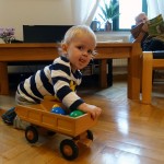 Der Benni weiß ganz genau was er möchte und wer was wo und wie machen soll. Er hat dabei ganz genaue Vorstellungen. So kommandiert er Mama und Papa regelrecht durch die Gegend. Da muss „Mama sitzen“, „Papa AA“ machen, „Mama weg“, „Papa hui Auto“ oder „Mama buff“ machen. Letztens nach der Krippe wollte Benni, dass Papa ihm einer seiner Autos repariert. Dann hieß es lautstark „Papa auf“ (Papa saß wie von Benni befohlen im Sessel), „Papa heile“ und er wurde sofort nach der Reparatur mit einem energischen „Papa weg sitzen“ wieder weg geschickt 😉 Leistet man dann seinen Anweisungen Folge, freut sich Benni total 🙂