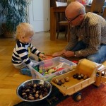 Da es heute draußen den ganzen Tag über nass und ungemütlich war, machten es sich Mama und Papa mit ihrem Spatz zu Hause gemütlich. Inspiriert von Opa Roland wurde das Projekt „Auto hui“ perfektioniert und etwas aufgemotzt. Bloß gut, dass im Schlafzimmer noch eine große tolle Hui-Platte lagert. Benni war kaum zu bremsen seine Autos und Bagger hinunter zu schubsen 🙂