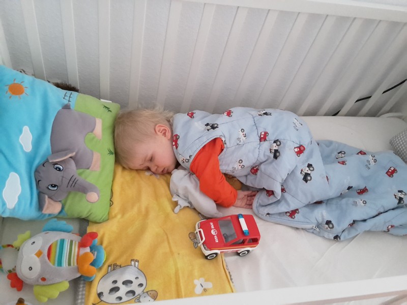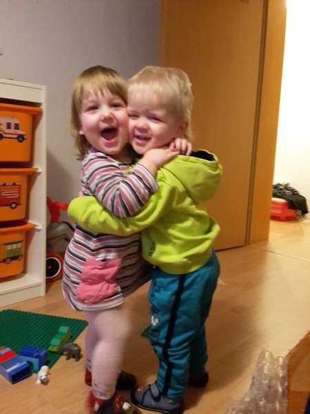 Letztes Wochenende war Josi zu Besuch – Bennis Freundin aus seiner Kitagruppe. Benni freute sich schon den ganzen Tag auf seine Herzallerliebste und ließ sich Mittags super lieb und ohne Theater hin legen. Erst als Josi bereits an der Haustür klingelte, wachte Benni auf und begrüßte sie noch im Schlafanzug. Er freute sich so dolle, dass er sich in null Komma nix anziehen lies und sie dann sofort an die Hand mit in sein Kinderzimmer nahm. Von da an waren beide Mamas abgeschrieben. Zum Kaffee gab es dann lecker Schokokuchen und Apfelmuffins, die beide Mäuse mit Appetit verputzten. Nach der Stärkung wurde natürlich ausgiebig weiter gespielt und getobt. Beide schauten sich Bennis tolle Autobücher an, Josi schob ihren Prinzen mit dem Bobbycar durch die Wohnung und immer wieder drückten sie sich und jagten sich gegenseitig quietschend und lachend durch die Wohnung 🙂 Mama und Sabrina kamen aus dem Grinsen und Lachen kaum noch heraus. Die beiden Mäuse beschäftigten sich so toll alleine, dass sich die Erwachsenen bis zum Abend in Ruhe einmal unterhalten und austauschen konnten. Natürlich gab es auch noch lecker Abendbrot für die Rasselbande – selbst gemachte Pizza 🙂 Noch schnell seine Josi nach Hause verabschiedet, ging es für Benni dann etwas später als gewohnt ins Bett. Er war noch so furchtbar aufgeregt und aufgedreht, dass er erst spät am Abend zur Ruhe fand.