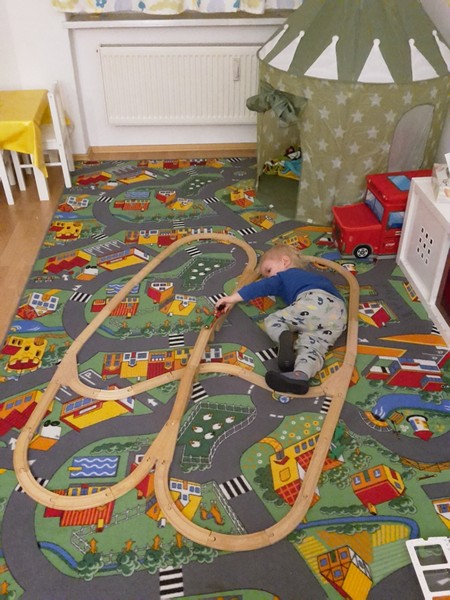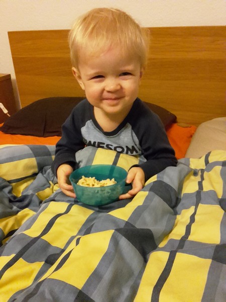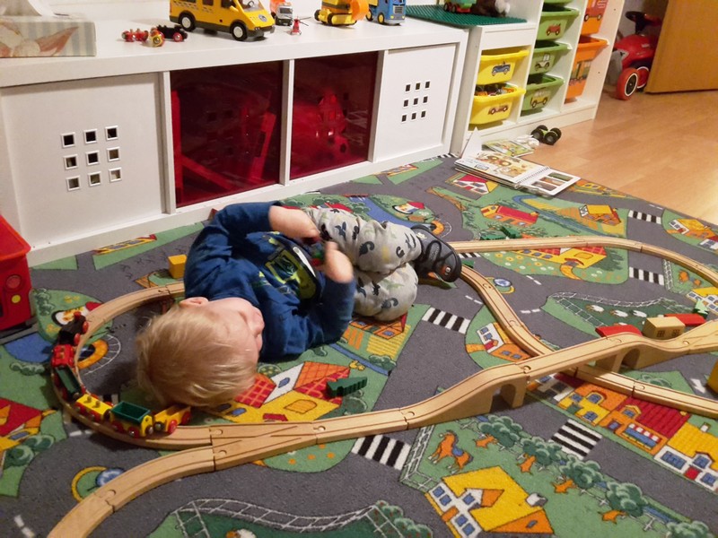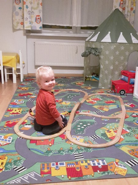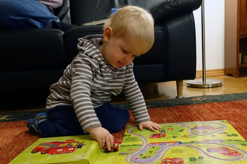 Letzte Woche verbrachte der Benni fast eine ganze Woche bei Oma Ute und Opa Roland. Da die Krippe noch Schließzeit hatte, waren sie so lieb und kümmerten sich tagsüber um den Spatz. So brauchten Mama und Papa keinen Urlaub nehmen. Und was soll man sagen – die ganzen 4 Tage war Benni ein solch liebes, braves, gut gelauntes, permanent essendes, ausgeglichenes, toll spielendes und super schlafendes Kind gewesen. Die Mama brachte ihn wie schon aus der Krippe gewohnt kurz vor sieben zu Oma und Opa nach Hause. Dort konnte er es immer kaum erwarten mit all seinen Autos zu spielen. Vor allem aber hatte er es auf die frischen Brötchen abgesehen, die der Opa ganz lieb jeden Morgen vom Bäcker holte. Benni wartete schon immer sehr ungeduldig an der Tür, ehe der Opa mit dem Brötchenbeutel hinein kam. Er aß, ja fraß regelrecht seinen Großeltern die Haare vom Kopf. Als ob er bei Mama und Papa zu Hause nichts bekommen würde 😉 Da das Wetter die gesamte Woche eher mau war, wurde zum größten Teil in der Wohnung gespielt. Benni guckte ganz lieb Bilderbücher mit der Oma an, spielte mit dem Opa im Flur Fußball und sagte wie gewohnt zwischendurch immer ganz lieb an, wenn er auf die Toilette musste. Gleich nach Mamas Feierabend holte sie ihren Spatz bei ihnen ab. Und wie es nicht hätte besser sein können, schlief Benni immer noch, sodass die Mama noch in Ruhe Mittag essen konnte. Voller Begeisterung strahlte Benni jedesmal über beide Backen, als er nach dem Aufstehen die Mama erblickte 🙂 Danach wurde natürlich noch ausgiebig gekuschelt und getobt, ehe es nach dem Kaffee wieder zurück nach hause ging.