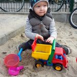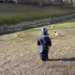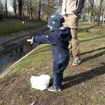 Die Sonne lachte schon am frühen Morgen vom blauen Himmel, sodass sich Mama und Papa spontan entschlossen, den Haushalt Haushalt seien zu lassen und mit ihrem Spatz raus zu gehen. Es ging zum nahe gelegenen kleinen Bach zu den Enten. Die Mama hatte zu Hause noch schnell das alte Brot geschnitten und mit eingepackt. Angekommen, war Benni gleich Feuer und Flamme. Er schmiss in einer Tour die Brotkrümel zu den Enten – sowohl an Land als auch in den Bach hinein. Als die Tüte schließlich alle war, ging es den Rest des Vormittags noch auf den kleinen Spielplatz in der Nähe. Dort rutschte er dann noch einige Male hinunter, ehe es, vorbei an den völlig voll gefressenen schlafenden Enten, wieder nach Hause ging. Benni machte dann sehr sehr lange Mittagsschlaf. Mama und Papa mussten ihn schließlich wecken, um noch etwas vom sonnigen Nachmittag zu haben. Gleich nach dem Aufstehen ging es mit dem Fahrrad zum großen Spielplatz. Benni weigerte sich zuerst strickt im Fahrradsitz mitzufahren. Nach längerer Diskussion ging es dann doch noch auf Papas Fahrrad gen Spielplatz. Dort steppte bei herrlichstem Sonnenschein natürlich der Bär. Aber Benni guckte einfach nur herum und spielte ganz lieb und vertieft mit seinem Kipper im Sand. Er taute dann doch noch etwas auf und wollte unbedingt die große Rutsche herunter rutschen. Natürlich ging das nur auf dem Schoß von Mama und Papa und so krakselten sie abwechselnd mit Benni den Hügel hinauf und sausten mit ihm die Rutsche herunter. Mit Einbruch der Dunkelheit ging es dann wieder nach Hause, wo Benni nach etlichen Portionen Nudeln überhaupt nicht müde war und sehr schwer in den Schlaf fand.