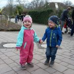 Auch der Sonntag zeigte sich wettertechnisch von seiner besten Seite. Doch Benni wollte par tout nicht raus und so nutzen das Mama und Papa gleich, um den tags zuvor liegen gebliebenen Haushalt zu machen. Es gab schon sehr zeitig Mittag, da Benni schon arg müde war. Er hatte auch die Nacht sehr schlecht geschlafen und war schon ganz früh wach gewesen. Wie schon am Samstag machte Benni einen ausgiebigen Mittagsschlaf. Bester Laune und voller Vorfreude wurde sich dann fertig gemacht, denn es ging am Nachmittag in den Zoo. Und das nicht alleine – seine Freundin Josi kam mit. Dort angekommen kannte die Freude bei beiden Mäusen kaum Grenzen. Hand in Hand gingen sie von Gehege zu Gehege. Nach einer kurzen Toilettenpause gab es dann eine große Kugel Eis. Das fand natürlich großen Anklang. Danach ging es dann noch vorbei an den weißen Löwen und deren Babys ab zu den Pinguinen und dann weiter Richtung Streichelgehege. Dort streichelte Benni nicht nur die Ziegen, sondern er hatte es vor allem auf die vielen Rutschen abgesehen. Die Mama staunte nicht schlecht, als Benni völlig alleine die Treppen hoch stiefelte und durch den Tunnel krabbelte. Da Josi sichtlich Angst vor den vielen Ziegen hatte, ging es dann noch zur Elefantenrutsche, wo Beide wieder Hand in Hand hinunter rutschten. Ein Bild für die Götter 🙂 Aber auch der schönste Ausflug hatte mal ein Ende und so ging es dann kurz bevor der Zoo seine Tore zu machte in Richtung Heimat. Benni war am Abend noch völlig aufgedreht und fand wieder nur sehr schwer in den Schlaf.