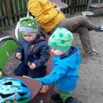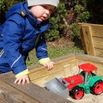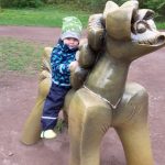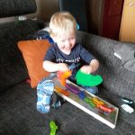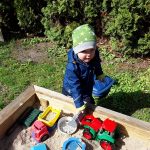 Am Ostersamstag stand der Besuch von Opa Rainer, Oma Beate und Tante Sarah auf dem Programm. Durch die doch recht weite Anreise trafen sie erst am frühen Mittag in Magdeburg ein. Die Freude war auf allen Seiten riesengroß. Bennis Großeltern und die Tante hatten ihren Spatz ja seit Weihnachten nicht gesehen. Benni war zu Beginn wie gewohnt etwas schüchtern, kuschelte aber lieb mit allen. Als Benni dann seine vielen Autos stolz präsentierte, taute er komplett auf. Er war kaum noch zu halten, schäkerte und tobte in einer Tour herum. Auch der Osterhase hatte natürlich etwas mitgebracht. Neben zahlreichen Klamotten gab es ein super süßes Dino-Zahlen-Puzzle. Benni freute sich riesig und packte es sogleich aus. Zum Mittag gab es leckeren Blumenkohlauflauf, den Benni regelrecht „inhalierte“ 😉 Und die ganze Zeit wurde fleißig weiter geschäkert – vor allem mit seiner Tante Sarah. Nach dem Mittagessen beschlossen alle sich trotz des schlechten Wetters auf den Weg in den Zoo zu machen. Auf dem Weg dorthin schlief Benni sofort ein, nur um am Zoo angekommen wieder putzmunter zu sein. Die Aufregung war einfach zu groß gewesen. Im Zoo angekommen öffnete der Himmel mehrmals seine Schleusen, sodass alle Unterschlupf im Giraffen-und Affenhaus fanden. Danach beruhigte sich das Wetter und die Sonne kam sogar heraus. Benni rannte regelrecht von Gehege zu Gehege und zeigte allen wer wo zu Hause ist. Noch schnell die Ziegen im Streichelgehege gestreichelt ging es natürlich zum angrenzenden Spielplatz, wo seine geliebte Elefantenrutsche auf ihn wartete. Benni kletterte immer und immer wieder die Stufen hoch und rutschte hinunter. Bloß gut, dass er Matschsachen an hatte 😉 Bei der ca. 25. Rutschentour hörten Mama und Papa auf zu zählen. Der Benni war einfach nicht müde zu bekommen. Am Nachmittag ging es dann wieder zurück nach Hause zu Mama und Papa. Und auch auf der Rückfahrt schlief Benni sofort ein. Zu Hause angekommen, wurde er gleich in sein Bettchen gelegt, wo er dann weiterschlafen konnte. Aber nix da – nach wenigen Minuten schallte es „Benni ausgeschlafen“ aus seinem Zimmer und er war wieder oben auf. Nur all zu verständlich, da ja lecker Kuchen und Muffins aufgetischt wurden. 😉 Er mampfte ordentlich was weg, nur um im Anschluss gleich spielen zu können. Benni zeigte Oma und Tante Sarah sein tolles Kinderzimmer und alle 3 spielten bis zum frühen Abend ausgelassen miteinander. Benni genoss es sichtlich 🙂 Kurz vor dem Abendbrot ging es dann für Oma, Opa und das Tantchen wieder zurück nach Hause. Benni verabschiedete alle noch ganz lieb, ehe es für ihn nach dem Abendbrot und ohne Theater sofort ins Bett ging.