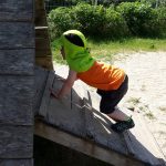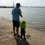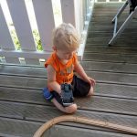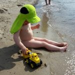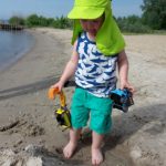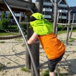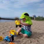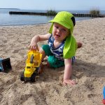 Die erste Nacht verlief weitestgehend ruhig und Benni schlief fast durch und das bis sage und schreibe kurz vor sieben. Er rief lauthals von seinem Bett aus, dass er ausgeschlafen hat. Noch in seinem Bett kuschelte und tobte die Mama mit ihrem Spatz herum, ehe es eine Etage tiefer zu Papa ins Bett ging. Bei herrlichstem Sonnenschein mit Blick auf die Müritz wurde hier auch noch ausgiebig gekuschelt und getobt. Benni war so lieb und spielte auf dem Balkon, sodass Mama und Papa noch ein wenig im Bett bleiben durften. Natürlich wurde bei dem tollen Wetter auf dem Balkon gefrühstückt. Nach dem Frühstück machten sich alle startklar und es ging raus zu einer kleinen Erkundungstour im Ferienpark. Zuerst ging es zum nahe gelegenen Minimarkt, der seinem Namen alle Ehre machte. Aber zumindest ein Eis wurde ergattert, welches Mama, Papa und der Benni genüsslich verspeisten. Dann ging es weiter Richtung Strandpromenade und zum kleinen Hafen. Benni war ganz fasziniert ob der vielen Segel-und Motorboote. Einige von ihnen fuhren zur Freude von ihm auch gerade raus. Auf dem Rückweg ging es dann zum Spielplatz, den Benni gleich in Beschlag nahm. Es wurde gerutscht, geklettert, an der Matschstraße gematscht und gebaggert. Gegen Mittag wurde dann die Hitze fast unerträglich und so ging es dann wieder nach Hause. Nach einem kleinen Päuschen machte die Mama dann Mittagessen, wo Benni wie gewohnt ordentlich rein haute. Noch schnell den Toilettengang absolviert, ging es dann gleich ins Bettchen zum Mittagsschlaf. Den nutzte die Mama auch gleich und gönnte sich auch eine große Mütze Schlaf. Nach 2 1/2 Stunden wachte Benni zum Glück von alleine und bestens gelaunt auf. Ans Anziehen war aber überhaupt nicht zu denken. Benni wollte im Bett toben. Dem Wunsch kamen Mama und Papa natürlich gerne nach. Am Nachmittag übten sie dann fleißig mit Benni, wie er am Besten und Sichersten alleine die Wendeltreppe im Haus hinab steigen konnte. Bisher rief er immer nach Mama oder Papa, die ihn dann immer herunter tragen mussten. Er lernte das ruck zuck und konnte gar nicht genug vom Hoch-und Runtersteigen bekommen. So war es dann schon etwas später, ehe es mit Benni an den Strand ging. Dieses Mal kam auch sein Bagger mit, mit dem er ausgelassen baggerte. Der Himmel bewölkte sich etwas und die leichte Brise machte die Hitze dann sogar erträglich. Mittlerweile nackig wollte Benni unbedingt mit Papa ins Wasser. Weiter als bis zum Po kam er nicht – das Wasser war ihm einfach zu kalt gewesen. So spielte er stattdessen Ball mit ihm und aß Mamas kompletten Vorrat an Keksen auf 😉 Am frühen Abend ging es dann wieder auf den Spielplatz, wo er mit seiner Giraffe die Rutsche immer und immer wieder hinunter rutschte. Wieder zu Hause wurde noch schnell mit Opa Roland und Oma Ute geskyped, ehe es wieder Abendbrot auf dem Balkon gab. Der Papa ging mit Benni nochmal runter auf den Spielplatz und die Mama räumte schon mal alles auf und bereitete alles für die Nacht vor. Mit etwas Überzeugungsarbeit ging es dann für Benni doch noch in die Badewanne. Benni und Papa guckten noch einige Bücher an, ehe der kleine Abenteurer mit seiner Feuerwehr im Arm friedlich einschlief.