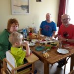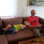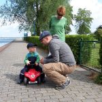 Und schon wieder war die Nacht alles andere als ruhig gewesen. Dieses Mal jammerte Benni schon kurz nach dem Einschlafen. Immer wieder schrie und war kaum zu beruhigen. So beschloss die Mama die Nacht wieder neben ihrem Spatz zu verbringen. Das half aber auch nicht viel. Benni wachte immer und immer wieder auf und an Schlaf war kaum zu denken. Um halb sieben ging der Spuk dann richtig weiter. Benni kreischte wie am Spieß und ließ sich weder durch Mama noch durch Papa oder Oma und Opa beruhigen. Nach über einer halben Stunde beruhigte er sich endlich und erzählte, dass er schlecht geträumt hat. Als er dann sagte, dass ihn wer aufgegessen hat, lief es der Mama kalt den Rücken herunter. Als er richtig wach, durfte er zum Trösten noch mit einer vollen Keksschale zu Opa ins Bett und beide schauten sich zusammen Baggervideos auf dem tablet an. Diesen Morgen ließ sich Benni widerstandslos anziehen und konnte so den Opa zum Brötchen holen mit begleiten. Voller Stolz mit einem Brötchen in der Hand kam er dann wieder zurück. Gefrühstückt wurde dann drinnen, da es draußen doch recht frisch war. Nach dem Frühstück wollte Benni noch lieber im Haus spielen. Er war schon wieder extrem knatschig und weinerlich, was so langsam aber sicher anstrengend wurde. Am späten Nachmittag ging es dann in den Nachbarort zu einem kleinen Spaziergang. Bereits auf dem Weg dorthin schlief Benni sofort ein. Die Nacht hatte doch Spuren hinterlassen. Oma und Mama erkundeten ein wenig die Umgebung, ehe Benni durch einen vorbei fahrenden Traktor geweckt wurde. Wieder wach erblickte er sofort den kleinen Spielplatz mit einem großen Tunnel. Immer wieder lief er da durch und spielte kuckuck. Auch der nahe gelegenen landwirtschaftlichen Betrieb erweckte sein Interesse. Da waren aber auch so viele Traktoren und Kühe. Zum Mittagessen ging es diesmal in eine kleine Gaststätte im Ort. Da die hungrige Meute etwas zu früh dort war, wurde der kleine Hafen mit den vielen Booten noch besichtigt. Endlich auf der Terrasse Platz genommen, gab es lecker Fisch und natürlich Pommes für den Benni. Da es schon spät war ging es für Beni zusammen mit der Oma und Mama zurück ins Haus und die Männer fuhren noch schnell einkaufen. Zu Hause angekommen ging Benni dann ganz lieb auf die Toilette und sofort ins Bettchen. Die Ruhe währte dann aber nicht lange. Benni weinte und jammerte wieder bitterlich. Der Opa war dann so lieb und legte sich zu ihm, sodass die Mama endlich etwas schlafen konnte. Am Nachmittag wurde Benni dann sanft wach gemacht. An Aufstehen oder gar Anziehen war aber nicht zu denken. Er kasperte in einer Tour herum und war leider wieder sehr knatschig und schrie sehr viel. So mussten Opa und die Mama alleine los die Schwäne am Seeufer füttern. Das passte Benni aber so gar nicht und so entschloss er sich doch noch sich anziehen zu lassen und mit nach draußen zu kommen. Mit dem Bobbycar ging es dann zum Spielplatz. Dort war auch wieder Hannah, die er schon tags zuvor kennen gelernt hatte. Benni ließ einmal wieder den Egoisten heraus hängen und wollte weder seinen Ball noch sein Auto teilen. Er war nur darauf aus ihr zu zeigen, dass das alles seins ist. Zum Schuss arrangierten sie sich beide aber und spielten und rutschten lieb zusammen. Es wurde sich noch ganz lieb voneinander verabschiedet, ehe es wieder zu später Stunde ins Haus ging. Abendbrot gab es wieder auf dem Balkon und alle hauten ordentlich rein – bis auf Benni. Er war die Tage über eh schon ein ganz schlechter Esser gewesen. Während die Mama danach schon anfing alle Sachen einzupacken, ging es für Benni mit dem Papa in die Badewanne. Nach dem üblichen Theater gab es dann noch eine Gute-Nacht-Geschichte von der Oma. Leider fiel es ihm dann enorm schwer in seinem Bettchen zur Ruhe zu finden. Er sagte immer wieder, dass er Angst hat und kuscheln möchte. Die Alpträume der letzten Nächte scheinen ihn doch schon sehr zugesetzt zu haben. So kuschelten die Mama, der Papa und zum Schluss der Opa mit ihm in seinem Bettchen. Nach einigem Herumgekasper schlief Benni dann auch recht friedlich ein. Der Opa erklärte sich bereit die Nacht in Bennis Bett zu verbringen.