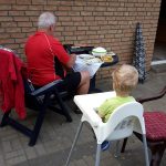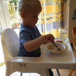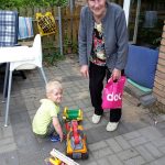 Die erste Nacht in Schönow verlief aller Bedenken zum Trotz sehr sehr ruhig. Benni schlief sensationell bis sieben Uhr am nächsten Morgen und wachte lediglich nur einmal auf. Nach einem kurzen Boxenstop auf Toilette und schnell angezogen ging es gleich hinunter zu Oma und Opa. Die waren nämlich schon sehr früh wach und übernahmen ihren Enkel sehr gerne. Mama und Papa konnten so noch etwas im Bett auskuscheln. Bei herrlichstem Sonnenschein nur etwas frisch gab es dann lecker Frühstück auf der Terrasse. Benni aß lecker Cornflakes und ein halbes Brötchen. Immer wieder versuchte er der Katze sein Frühstück anzubieten – mit mäßigem Erfolg. Während der Opa und der Papa nach dem Essen einkaufen fuhren, blieben die Oma und die Mama mit Benni zu Hause. Dort spielte Benni wie immer ausgelassen. Er versuchte dabei immer wieder der Katze seine tollen Autos schmackhaft zu machen. Nur leider zeigte sie nicht das von Benni gewünschte Interesse. Beim anschließenden Fußball spielen zeigte Benni wieder eine enorme Ausdauer. Er dribbelte wie ein kleiner Weltmeister. Die Oma backte in der Zwischenzeit einen Kuchen für den Nachmittag und bereitete das Mittag vor. Als der Papa endlich wieder zurück war, durfte dieser gleich die Mama beim Fußball spielen ablösen. Da Benni schon wieder seit drei Tagen kein großes Geschäft gemacht hatte, gab es dann wieder ein Abführzäpfchen – sehr zum Missfallen von ihm. Danach durfte er noch ein wenig mit seinen Autos spielen, ehe wieder auf der Terrasse Mittag gegessen wurde. Benni aß für seine Verhältnisse wieder sehr wenig. Danach fing er an wieder zu kreischen und auf und ab zu laufen. Das war das Signal für die Töpfchensession. Und wieder kreischte und schrie er und trampelte wild mit seinen Füßchen. Nach starkem Kampf kamen lediglich zwei kleine harte Köttel hervor. Trotz permanenter Motivation von Mama und Papa wollte einfach nicht mehr heraus kommen. Völlig erschöpft und müde ging es danach gleich ab ins Bettchen. Er durfte im großen Bett kuscheln und schlief in Mamas Armen sehr schnell ein. Diese nutzte die Mittagsruhe um schon einmal die Salate für den Grillabend vorzubereiten. Am Nachmittag kam dann auch die Uroma Immi mit dazu. Die Mama machte ihren Spatz dann doch wach und kuschelte noch ein wenig und tobte mit ihm herum. Benni sagte dann seiner Uromi ganz lieb hallo und freute sich sie endlich wieder zu sehen. Er zeigte ihr sofort stolz seinen ganzen Fuhrpark. Beim anschließenden Kaffee trinken langte er dann ordentlich zu und verdrückte fast ein komplettes Stück Schoko-Sahne-Kuchen. Dabei wurde er für sein äußerst sauberes Essverhalten mehrfach gelobt. Den Nachmittag wurde dann ausgelassen gespielt, immer wieder mit Gummi gespielt und der Fußball durch den Garten geschossen. Vor allem die Uromi stand sehr hoch im Kurs. Da Benni am Vortag schon mit voller Begeisterung die Pferde gefüttert hatte, ging es dann am späten Nachmittag noch einmal zu ihnen hin. Vorher wurde noch schnell eine große Tüte voll Gras gerupft. An der Koppel angekommen fackelte Benni nicht lange und schmiss eine Hand voll Gras nach der anderen vor die Pferdemäuler. Er kommentierte das immer wieder zuckersüß u.a. mit „Da Pferdchen, hab was zu Essen hin gelegt…kannste essen ja?“. Alle Anwesenden mussten lauthals los lachen. Wieder zu Hause wurde so langsam alles fürs Grillen vorbereitet. Benni achtete penibel darauf, was der Opa am Grill so alles machte und überwachte von seinem Hochstühlchen fortan jeden Handgriff von ihm 😉 Endlich alles fertig gegrillt mampfte Benni sofort drauf los. Besonders von Mamas Nudelsalat war er angetan 🙂 Völlig satt kasperte er noch lange mit allen Anwesenden herum, ehe sich die Uromi wieder auf den Heimweg machte. Benni spielte noch ein wenig Fußball, ehe es zu später Stunde in die Badewanne ging. Dort hatte er dann natürlich einen heiden Spaß mit der Oma und ließ sich ohne jedes Theater sowohl waschen als auch die Zähnchen putzen. Schnell in seine Schlafanzug geschlüpft, laß ihm die Oma noch eine Gute-Nacht-Geschichte vor. Mit Papa ins große Bett gekuschelt schlief Benni zu mittlerweile später Stunde sehr friedlich und rasch ein.
