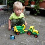 Der letzte Tag an der Müritz war angebrochen. Die Nacht verlief, dank dem Opa, außerordentlich ruhig. Er wachte nur einmal schreiend auf und schlief ansonsten sehr ruhig. Nach einem Toilettengang in der Früh kuschelte er noch ein wenig mit dem Opi, ehe es zum Bücher schmökern zu Oma ins Bett ging. So konnten Mama und Papa noch etwas länger schlafen. Benni war bereits schon angezogen, als er ihnen lieb guten Morgen sagte und sie aus dem Bett schmiss. Da Benni keine Lust hatte den Opi zum Bäcker zu begleiten, musste dieser dann alleine los gehen. Wieder zurück staubte Benni dann gleich ein Brötchen ab. Zum Frühstück aß er wieder nicht viel und widmete sich fortan seinen ganzen Autos. Während die Oma die Küche aufräumte, packte die Mama noch die restlichen Sachen zusammen. Der Papa und der Opa verstauten alles in die Autos, ehe dann die Abnahme der Wohnung anstand. Benni spielte während dessen mit Oma und Opa noch ein wenig auf dem Spielplatz. Die Mama regelte noch schnell den ganzen Papierkram, ehe es los ging. Für Oma und Opa ging es wieder nach Magdeburg und der Rest fuhr weiter zu Opa Rainer und Oma Beate nach Schönow. Es dauerte keine fünft Minuten, da hörte die Mama schon ein lautes Schnarchen vom Rücksitz – und es war nicht der Papa 🙂 Nach einer Stunde wachte Benni wieder auf und plapperte wie gewohnt drauf los, was er so alles sieht. Und da es fast nur über die Landstraße ging, gab es natürlich Etliches zu sehen. In Schönow angekommen packten Mama und Papa gleich alle Sachen aus und richteten alles ein. Oma und Opa mussten noch arbeiten, aber die Oma war so lieb und hatte der hungrigen Rasselbande einen Eintopf hingestellt. Alle langten ordentlich zu, ehe es für Benni erst auf Toilette und dann ins Bett ging. Ok so war zumindest der Plan von Mama und Papa gewesen. Benni hielt davon rein gar nichts. Er weinte und schrie wie am Spieß – das Problem mit dem Einschlafen und alleine schlafen war das große Problem. Nach fast einer Stunde Kampf beendeten sie dann ihr Vorhaben, zogen Benni an und es ging raus zum Spielen. Er war bester Laune und spielte mit dem Papa ausgelassen Fußball. Am Nachmittag kam dann zuerst die Oma und dann der Opa von Arbeit nach Hause. Benni freute sich riesig und begrüßte Beide herzlich. Seine Aufmerksamkeit galt dann aber wieder der Hauskatze „Gummi“. Er rannte ihr pausenlos hinterher, streichelte und fütterte sie. Zwischendurch gab es noch lecker Kuchen und Apfelschorle zur Stärkung. Benni wollte einfach nicht verstehen, warum die Gummi nur keinen Kuchen essen wollte 😉 Bis zum späten Nachmittag wurde noch etwas drinnen mit der Eisenbahn gespielt und mit Opa Autobücher angeschaut. Danach ging es für Oma, Mama, Papa und Benni noch raus für einen Spaziergang zur nahe gelegenen Pferdekoppel. Benni rannte was seine Beinchen her gaben und freute sich schon riesig darauf. Endlich angekommen kannte er ja mal überhaupt keine Scheu vor den großen Tieren. Mama und Papa pflückten ihm etwas Gras und er ging wieder und wieder zu ihnen hin und warf es ihnen direkt vor das Maul. Er freute sich tierisch, erst recht, als die „Stallkatze“ vorbei schaute. Er bequatschte sie wie verrückt, streichelte sie und wollte sie sogar auf den Arm nehmen. Dann ging es wieder auf den Heimweg – Benni zeigte hierbei eine schier nicht enden wollende Ausdauer und lief den kompletten Weg alleine. Wieder zu Hause angekommen hing er dann ganz schön durch und es gab sofort lecker Abendbrot für ihn. Er langte völlig ungewohnt zu, sodass die Oma ihm glatt noch eine Schnitte schmieren musste. Noch schnell die Toilette besucht ging es mit einer kurzen Katzenwäsche ins Bettchen. Natürlich nicht ohne dass ihm die Mama noch eine Gute-Nacht-Geschichte vorgelesen hat. Wie schon befürchtet wollte Benni weder im eigenen Bett, als auch im großen Bett von Mama und Papa alleine einschlafen. So legte sich die Mama dann mit dazu, sang „kleine Meise“ rauf und runter, ehe die Äuglein dann bei Benni schnell zufielen und er friedlich einschlief.