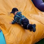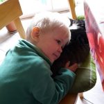 Die letzte Nacht sollte noch einmal sehr anstrengend verlaufen. Benni wachte wieder einmal weinend und wimmernd gegen halb 4 auf und ließ sich kaum beruhigen. So „wanderte“ er von Mamas in Papas Bett, wieder zurück in sein Bett, nur um am Ende wieder neben der Mama zu liegen. Immerhin durfte sie dann noch ein knappes Stündchen im Bett bleiben. Schließlich stand ja noch die lange Heimfahrt am Abend an. Die Männer frühstückten derweil zusammen mit Oma und Opa und natürlich der Katze. Das Wetter war leider zum im Bett bleiben – es regnete wie aus Kübeln. Das tat Bennis Spielfreude aber keinen Abbruch. Es wurde Fußball und mit seinen Autos gespielt, ohne Rücksicht auf Omas Pflanzen 😉 Man merkte ihm aber doch sehr die unruhige Nacht an. Benni war sehr verschmust und war recht zeitig müde. So gab es dann auch gleich Mittagessen – lecker Nudelsalat und Würstchen vom Vorabend. Benni mampfte ganz lieb seinen Teller lehr, ehe es dann langsam Richtung Bettchen ging. Wieder wollte er nur im großen Bett und mit ganz viel Kuscheln einschlafen. Die Mama legte sich gleich mit dazu und tankte noch etwas Schlaf für die Heimfahrt. Nach über 2 1/2 Stunden wachten alle beide zusammen auf und kuschelten noch eine ganze Weile im Bett, ehe kräftig herum getobt wurde. Ein Blick aus dem Fenster genügte und es war klar, dass man immer noch nicht draußen spielen konnte. So beschloss die Mama schon einmal soweit möglich alle Sachen zusammen zu packen. Derweil wurde noch rasch Kaffee getrunken. Benni verblüffte dann wieder mit einem riesigen Appetit – er aß ganze 1 1/2 große Stücke Schoko-Sahne-Kuchen. Danach hörte es doch tatsächlich einmal auf zu regnen. Benni bekam sein Matschoutfit an und schon ging es raus an die frische Luft. An dem Tag hatte der örtliche Sportverein ein kleinen Pfingstfest auf die Beine gestellt. Alle, bis auf den Opa, machten sich auf um alles zu erkunden. Angekommen staunte Benni nicht schlecht ob der vielen Leute und Attraktionen. Es gab Burg zum klettern und rutschen, viele Trampoline und diverse Fressbuden. Zum Erstaunen von Mama und Papa wollte er sofort die Kletterburg hinauf. Es herrschte reger Andrang und Benni war das zu Beginn nicht ganz geheuer. Er quietschte und knatschte immer wieder, wenn ihn andere Kinder überholten. Aber völlig überraschend kletterte er einfach weiter und setzte sich durch. Wieder hinunter gerutscht lobten ihn natürlich alle ausgiebig und es gab zur Belohnung ein großes Eis. Gleich danach ging es auf zum Trampolin. Dort haute und trat ihn ein anderes Kind immer wieder so heftig, dass Benni schnell die Nase voll hatte und weinend wieder abstieg. Danach musste dann gleich wieder die Kletterburg erklommen werden. Und wieder setzte er sich ganz tapfer gegen die anderen Kinder durch. Zum Schluss mussten ihn Mama und Papa jedoch „retten“. Die größeren Kinder waren dann doch zu rücksichtslos und es wurde zu gefährlich. Noch schnell ein paar Luftballons ergattert, ging es wieder auf den Heimweg. Natürlich wurden den Pferden noch ein kurzer Besuch abgestattet. Wieder zu Hause angekommen, gab es für alle noch schnell Abendbrot. Die Mama packte die restlichen Sachen zusammen und Benni bekam schon seine Schlafsachen für die Fahrt angezogen. Es wurden Oma, Opa uns natürlich der Katze ausgiebig auf Wiedersehen gesagt, ehe es Richtung Magdeburg ging. Kaum auf der Autobahn schlummerte Benni auch schon ein und wachte erst wieder kurz vor der Ankunft auf. Der Papa schleppte das ganze Gepäck nach oben, während sich die Mama um Benni kümmerte. Es ging noch einmal kurz auf die Toilette und dan gleich in sein Bettchen. Naja und da wollte er dann nicht wirklich bleiben. Es wurde dann ausgiebig im großen Bett von Mama und Papa gekuschelt und gesungen. Mama und Papa wechselten sich dabei ab, aber Benni dachte überhaupt nicht einzuschlafen. Es war schon fast Mitternacht, als die Müdigkeit endlich siegte und Benni endlich einschlief. Mama und Papa legten sich kurze Zeit später auch mit dazu.