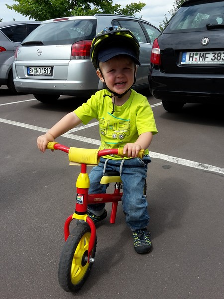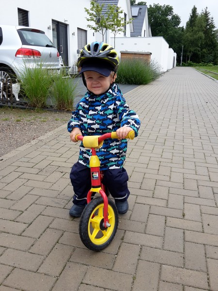 Der Benni fährt ja nun seit gut 3 Wochen Laufrad und das mit einer immensen Begeisterung. Er wird von Tag zu Tag immer sicherer und damit auch schneller. Mittlerweile kommt man zu Fuß kaum noch hinterher. Das einzige Manko war bis jetzt immer noch das Bremsen. Doch das hat er seit dem Wochenende jetzt auch drauf. Bleibt abzuwarten, ob und wie das sein Schuhwerk so verkraftet 😉 Jedenfalls können Mama und Papa mit ihm ab sofort etwas größere Touren machen – bald auch mit dem Fahrrad nebenher 🙂 Weiter so Benni 🙂