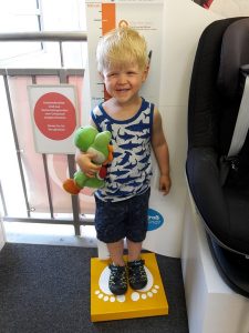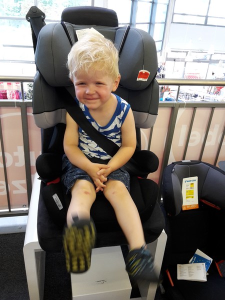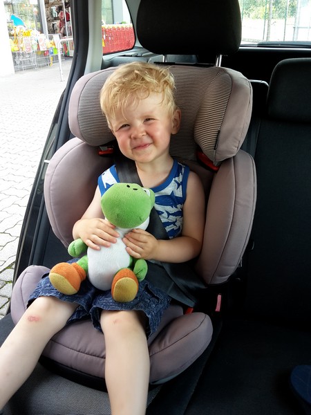 Das war aber auch aller höchste Eisenbahn. Mama und Papa hatten die Großinvestition erst zu seinem 3. Geburtstag geplant, aber nichts da. Der Benni ragte bei näherer Betrachtung schon deutlich über seine bisherige Kopfstütze hinaus. Da er auch bereits das maximale Gewicht des alten Kindersitzes von 15 kg fast erreicht hatte ging es auf direktem Wege zu Baby One. Die Mama hatte sich zuvor schon etwas belesen und einige Favoriten in die engere Wahl genommen. Beim Händler angekommen wurde Benni zuerst einmal gemessen. Mit grob geschätzten 96-98 cm passierte er die erste Hürde zum neuen Sitz. Er durfte dann einige Modelle Probe sitzen und man merkte ihm schon deutlich an wie stolz er war. Für ein Modell entschieden, durfte sich Benni noch eine Farbe aussuchen. Seine Wahl fiel auf ein dezentes braun mit Streifen an der Kopfstütze. Der neue Sitz wurde dann auch gleich eingesackt und sofort im Auto installiert. Vor Stolz fast platzend enterte Benni sogleich seinen neuen Kindersitz. Der ist jetzt um einiges leichter und bequemer. Er kommt jetzt auch selber hinein und wieder heraus. Da wurde es der Mama wieder so richtig bewusst, was für ein großer Junge ihr Spatz jetzt schon ist *schnief*