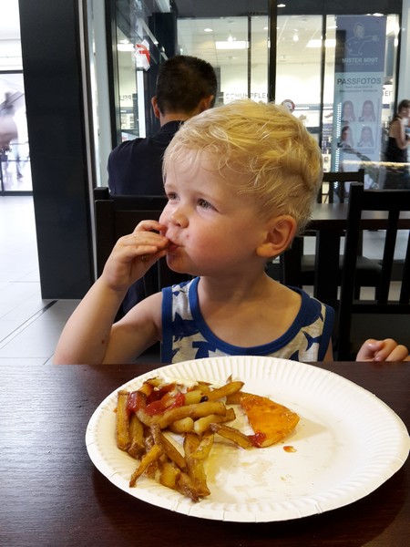 Da Benni beim Kauf so extrem lieb gewesen war ging es auf dem Rückweg gleich noch in den Bördepark, wo es dann eine riesen Portion Pommes mit Ketchup gab. Benni aß natürlich alles alleine auf – was auch sonst.