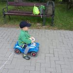 Letztes Wochenende stand das große Familiensportfest in Bennis Kita an. Zur Überraschung von Mama und Papa mussten auch sie mitmachen. Zu Beginn gab es für jedes Kind eine Papierblume um den Hals. Die Erzieher hatten im Innenhof mehrere kleine Stationen für Klein und Groß aufgebaut. Für jede absolvierte Übung gab es für Benni einen Stempel auf seine Blume. Benni war zuerst etwas skeptisch und schüchtern doch das verflog sehr schnell. Er durfte sich in den Disziplinen „Bobbycarwettrennen“, „Schubkarrenwettrennen“, Huckepackhürdenlauf“, „Kartoffellauf“, „Fußballfegen“, Entenangeln“ und „Büchsenwerfen“ mit den anderen Kindern messen. Dabei zeigte er in allen Disziplinen einen enormen Ehrgeiz. Sehr rasch hatte er schon alle Stempel gesammelt, sodass es dann eine große Medaille für die Sportskanone gab 🙂 Natürlich wurde auch ausreichend gefuttert. Es gab Gummibärchen, Waffeln und Obst satt. Gegen Mittag ging es dann wieder zurück nach Hause. Auf dem Weg dorthin schlief Benni dann völlig erschöpft ein und so legten ihn Mama und Papa sofort in sein Bettchen zum Mittagsschlaf.