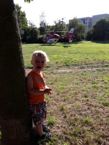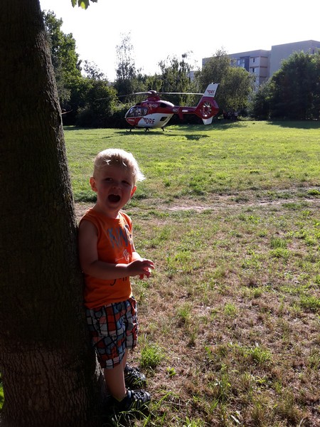 Kaum auf der Autobahn war Benni dann natürlich in seinem Element. Ohne Punkt und Komma wurde alles kommentiert, was er zu Gesicht bekam, während seine Lieblingslieder im Hintergrund liefen. Es dauerte fast 2 Stunden, ehe er dann doch ins Traumschlummerland entschwand. Leider schlief er nur sehr kurz. Bedingt durch einen riesen Stau musste die Mama einen riesen Umweg fahren, sodass Benni wieder wach wurde. Endlich wieder zurück auf der Autobahn, wurde an der nächsten Raststätte ein kleiner Stopp eingelegt. Neben einem kleinen Snack wurde Benni noch kurz neben dem Auto abgehangen, ehe es weiter ging. Leider kamen sie dann wieder in den nächsten großen Stau, gefolgt von einem heftigen Unwetter. Da wollte einer irgendwie nicht, dass wir ankommen. Schon langsam entnervt kamen alle dann erst am Nachmittag, nach fast 6 Stunden, in Rerik an.