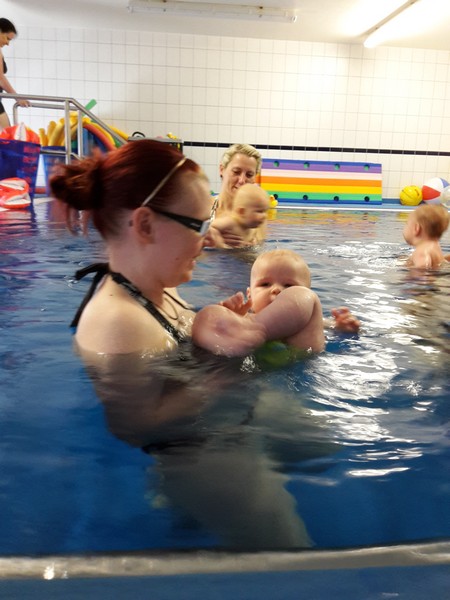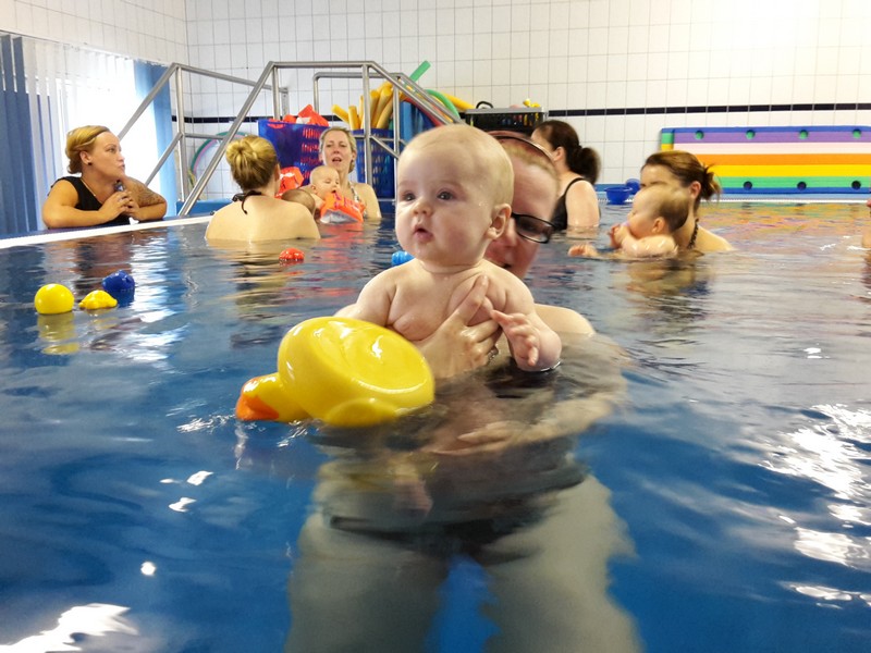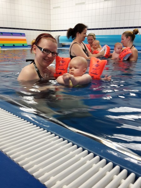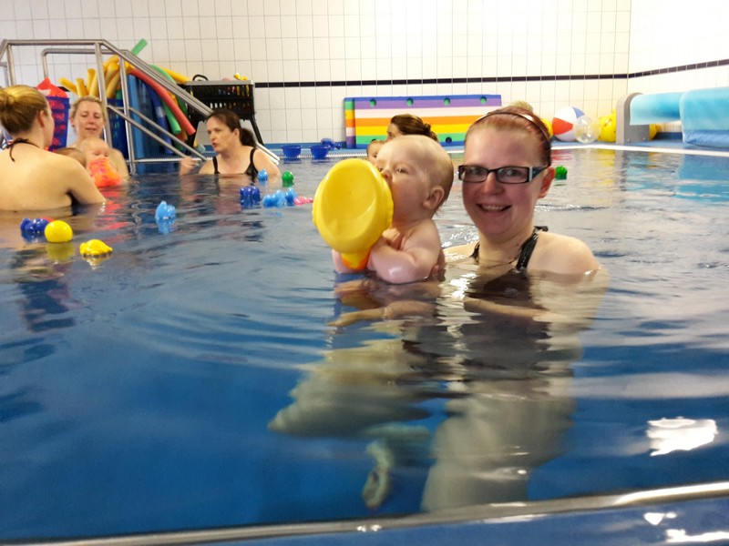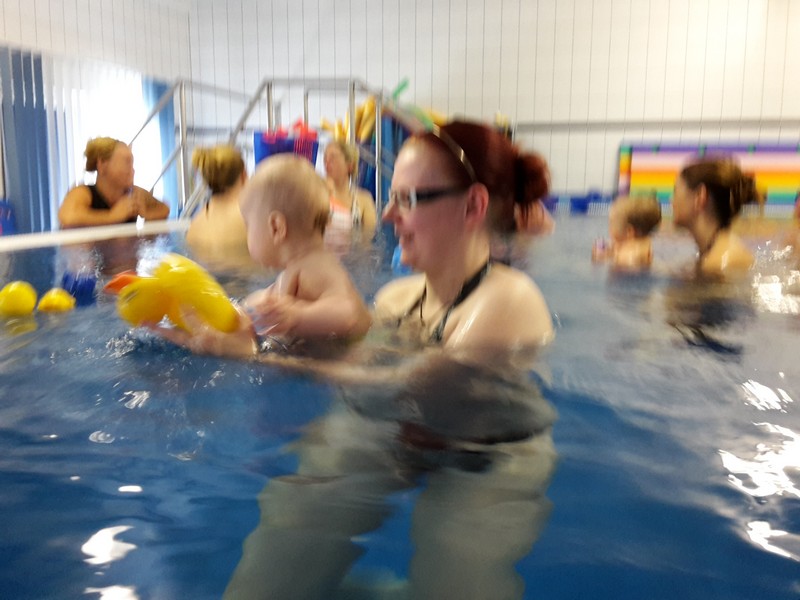 Am Dienstag stand die zweite Stunde im Babyschwimmen auf dem Plan. Die Omi war wieder als Unterstützung mit von der Partie. Wie schon die Woche zuvor, absolvierte der Benni das Plantschen wieder mit Bravour. Er war wieder sowas von entspannt und hat sich durch nichts aus der Ruhe bringen lassen. Dieses Mal wurden erstmals Schwimmflügelchen übergestreift. Benni störte das überhaupt nicht, jedoch konnte er damit seine Füßchen nicht mehr in den Mund stecken und das fuchste ihn dann doch 😉 Besonders fasziniert war er von der Gießkanne. Er wollte mit aller Macht das herausplätschernde Wasser greifen und war total wild darauf. Natürlich wurde auch wieder diverses Spielzeug in das Plantschbecken geschüttet und was schnappte sich der Benni sofort? Natürlich das größte Spielzeug von allen – die gelbe Ente 🙂